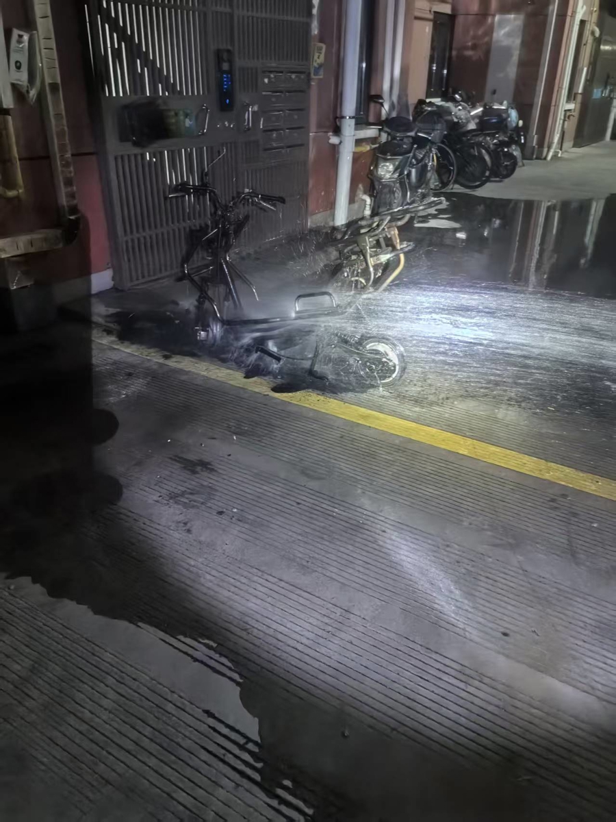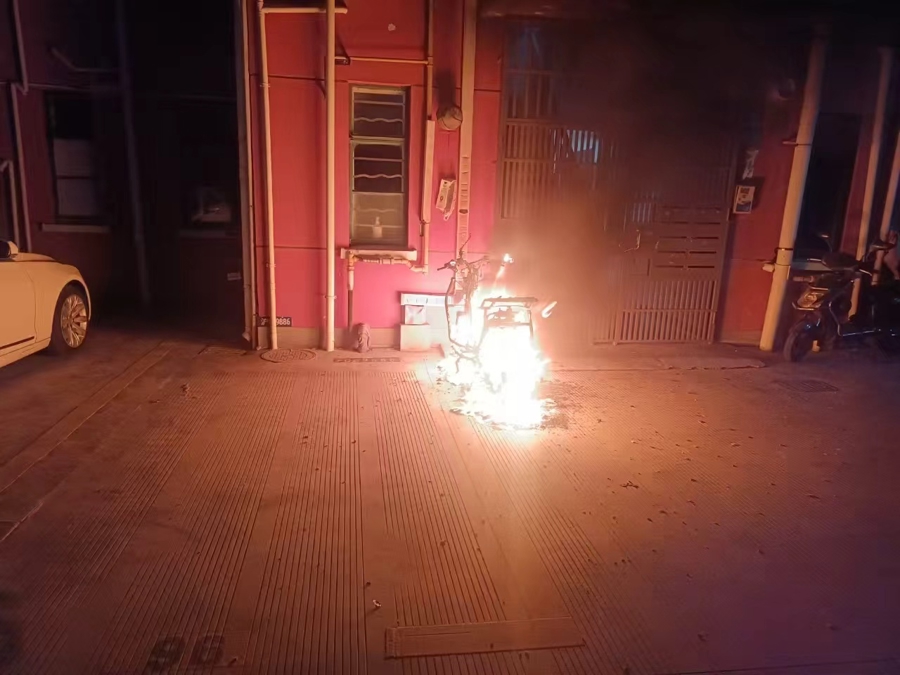 接到报警后,张堰镇平安办、张堰派出所、消防救援站、城运中心等相关部门迅速响应,工作人员第一时间抵达现场开展扑救工作。由于处置及时、措施得当,火势很快得到有效遏制并被顺利扑灭,此次险情未造成人员伤亡。事后经调取小区监控视频核查,此次起火原因系高空抛落未熄灭烟头至电动自行车上,进而引燃车辆引发火灾。